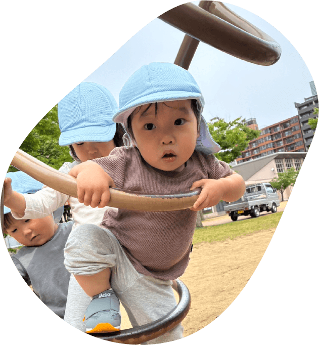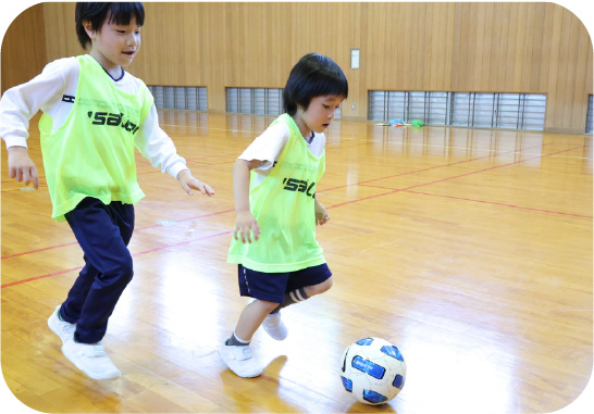 体を動かす楽しさを通して心と体の成長を促します。3・4・5歳児は友だちと協力したり励まし合い成功を喜び合う中で思いやりなどの社会性が育まれます。