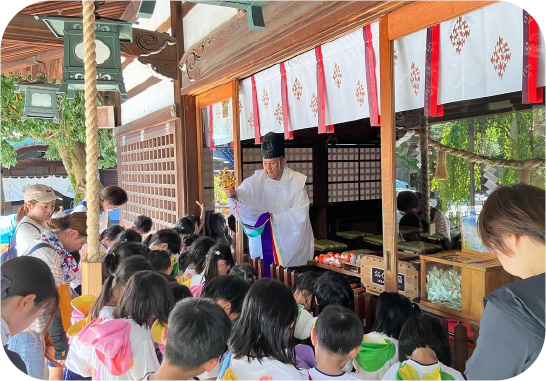 年に3回、安江八幡宮へ参拝に行っています。お祓いをして頂いたり、玉串をお供えし祈願しています。神社特有の神聖な雰囲気の中、回数を重ねるごとに2礼・2拍手・1礼などの作法が自然と丁寧になっていきます。