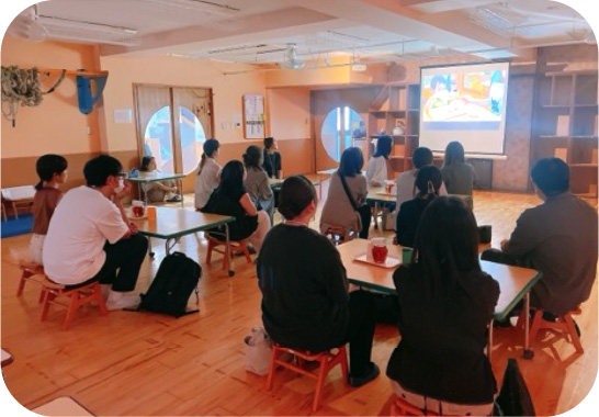 年に2回行っています。お父さまとお母さま対象で共に参加することが可能です。担任を交えて保育の話をしたり、子育ての悩みや不安など、保護者の方同士で雑談を交えながら気軽にお話しできる場となっています。